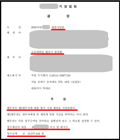 사업주 통장 가압류 물품대금가압류 성공한 사건