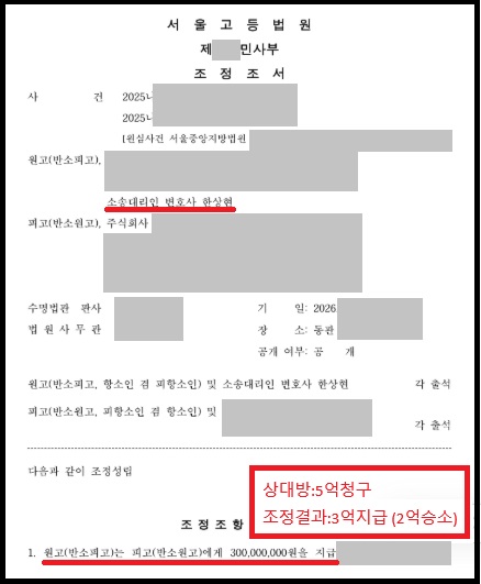 아래 판결문은 상대방이 5억 넘는 금액을 청구했으나, 3억에 합의를 보아 좋게 해결한 사건입니다.