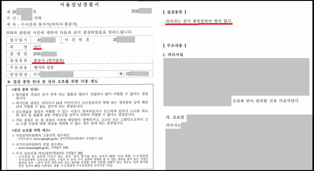 사기 고소당했지만 불송치결정 받은 실제 사례|사기 혐의 변호사 조력의 중요성
